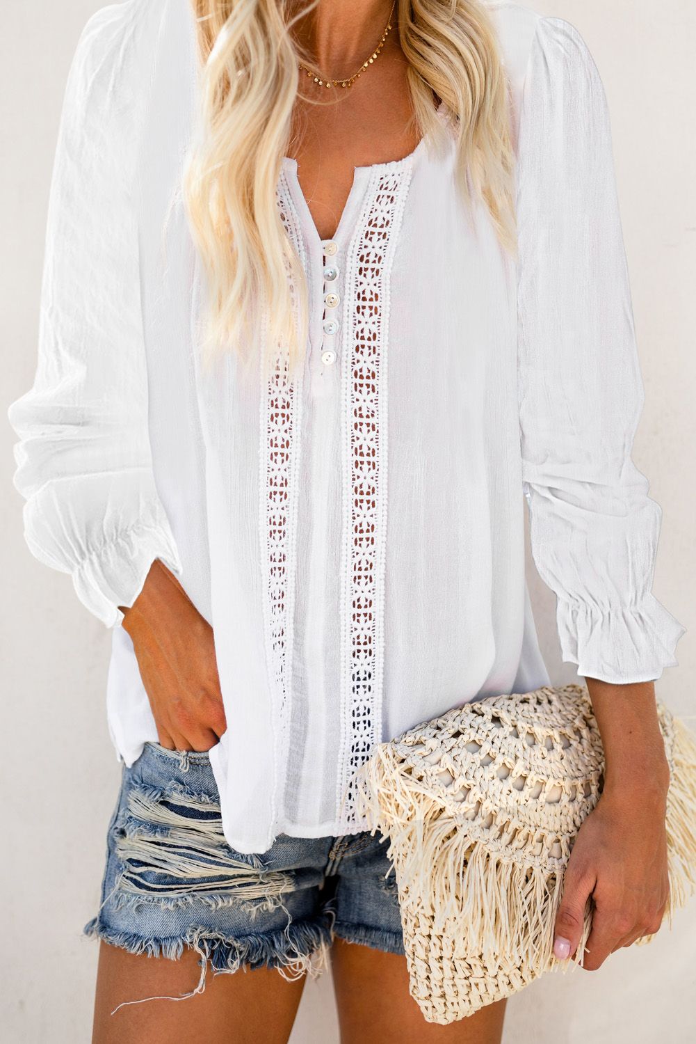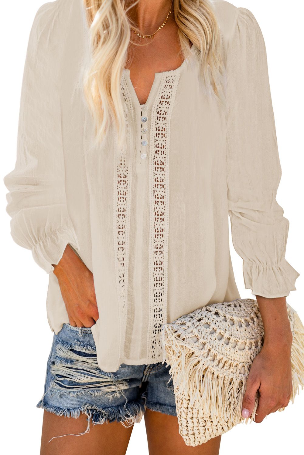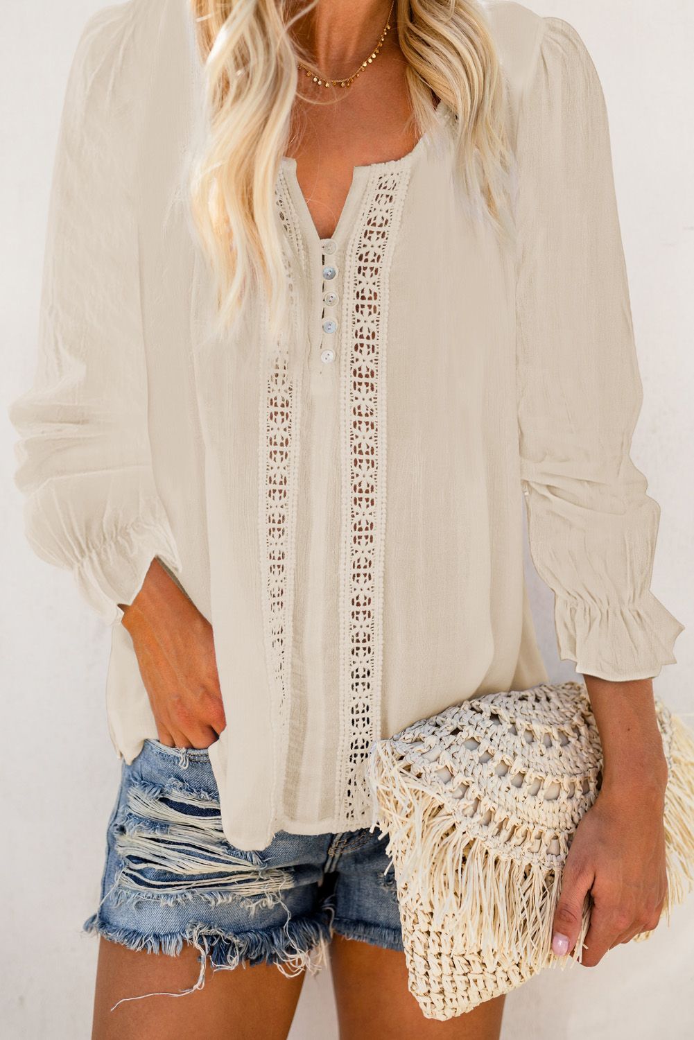 Apriot Bohemian Bubble Sleeve Eyelet Blouse