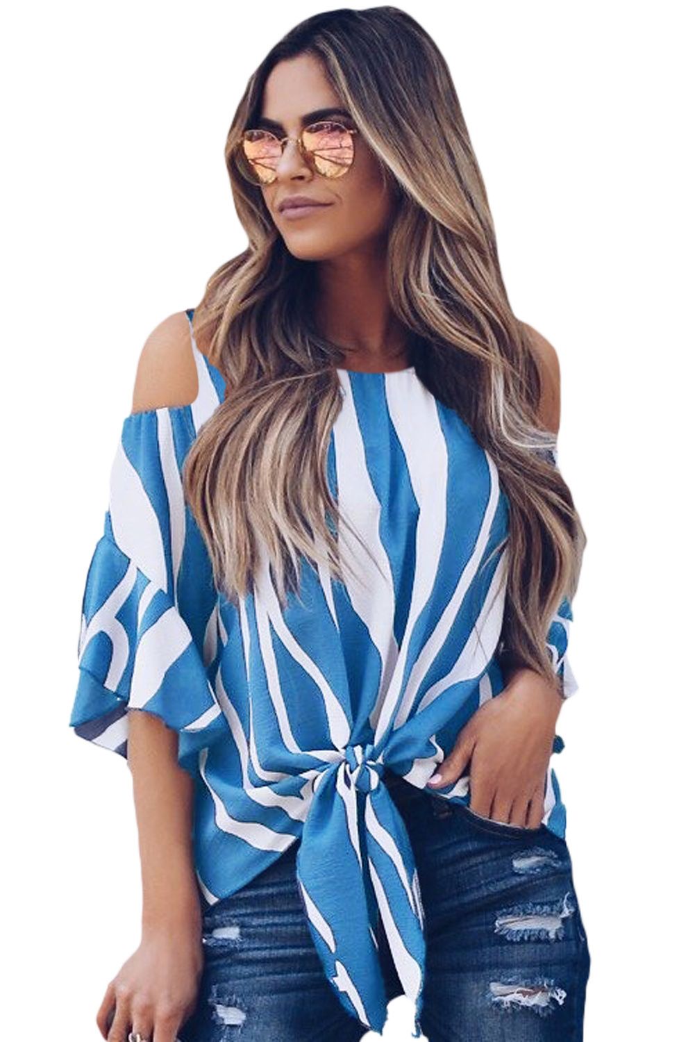 Cold shoulder and a tie front for a sassy look