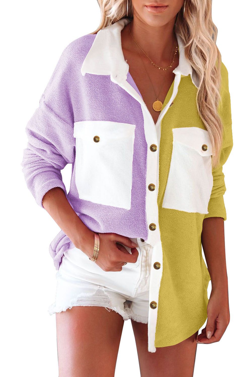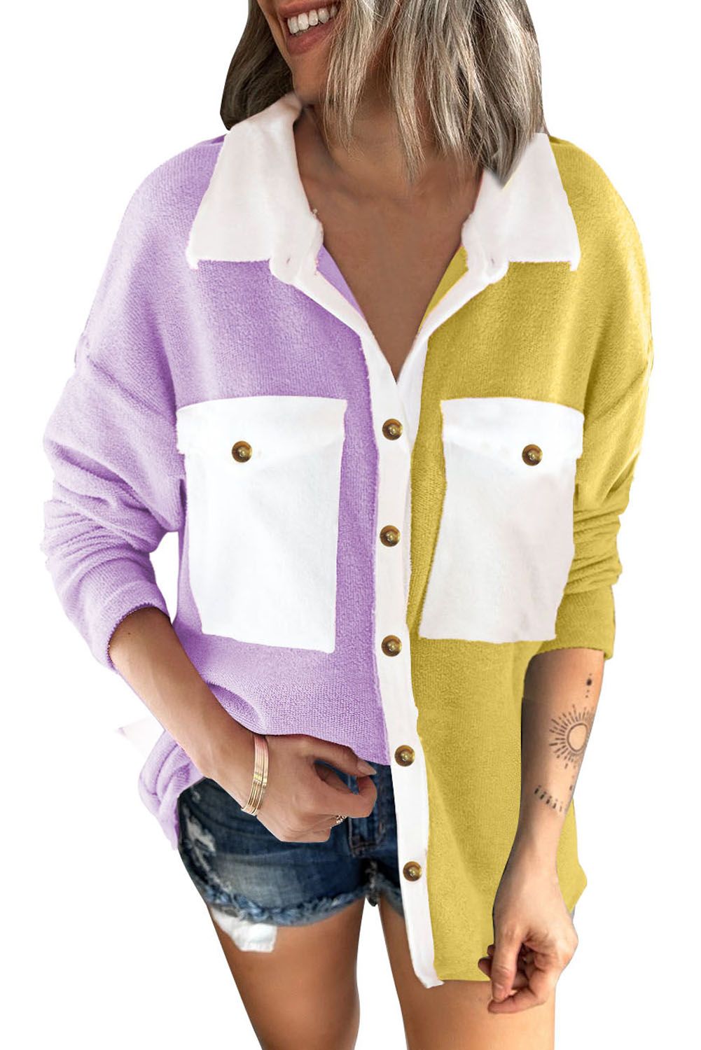 Gray Colorblock Fleece Pockets Buttoned Shirt