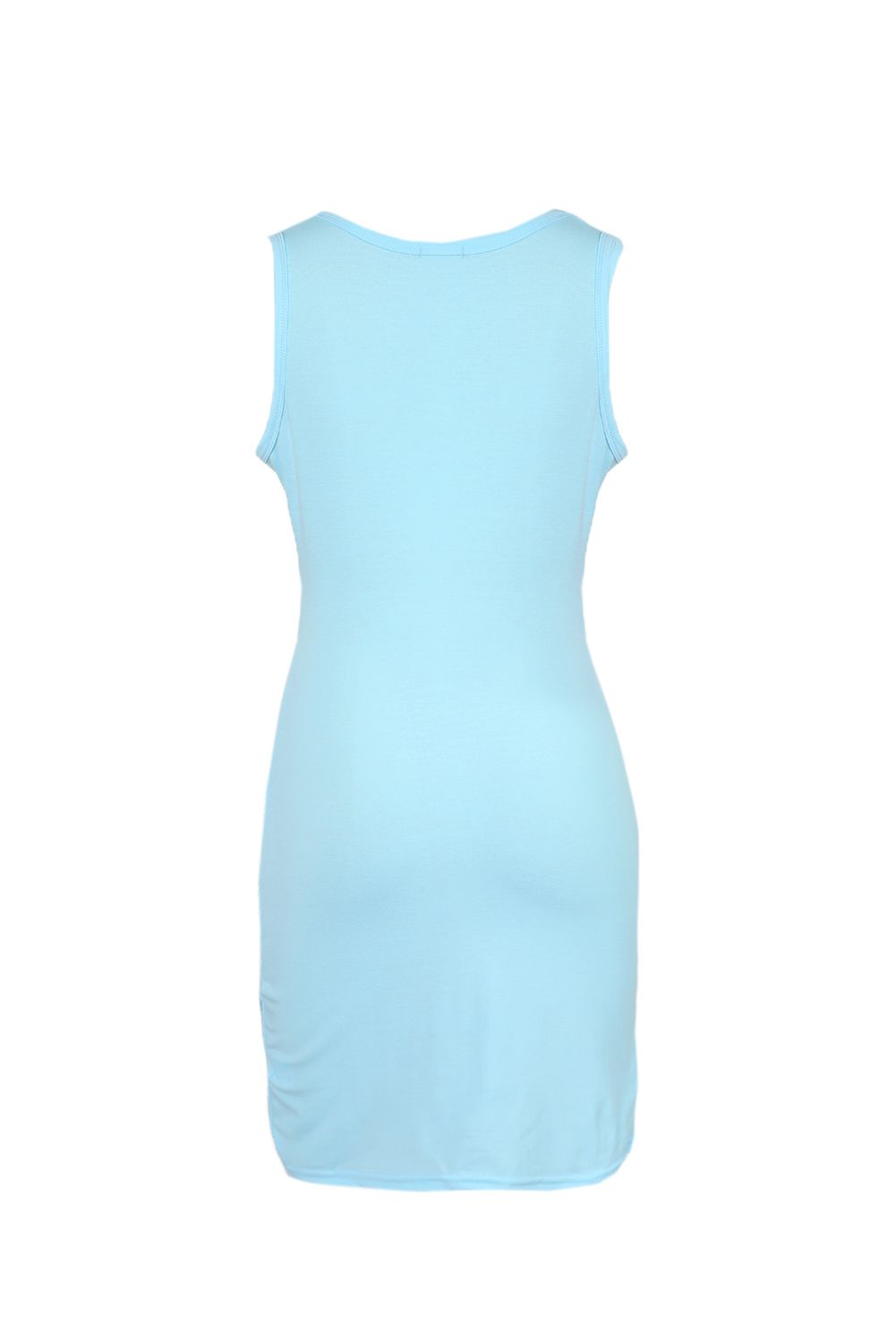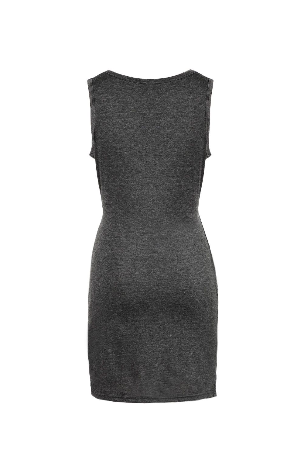 This mini dress designed with a classic crew neck, non-sleeved, bodycon fit, above the knee length and the twist hollow-out design is very fashionable and eye-catching